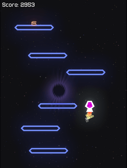 Game Description: A space themed re-creation of Doodle Jump. Use the springs, jetpacks, and wrapping screen to your advantage to get as high as you can while avoiding falling and the black holes along your way.